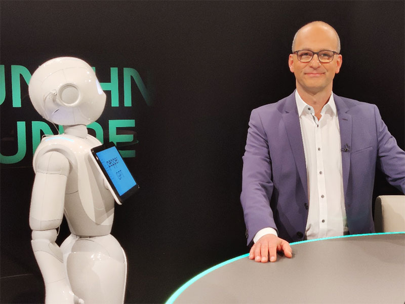 Januar 2023, ChatGPT beginnt bekannt zu werden. Weltpremiere im TV – Roboter Pepper online verbunden mit Chat-GPT tritt als Talkshowgast live in der Münchner Runde im BR auf neben Chefredakteur Christian Nitsche und weiteren Gästen. Er diskutiert eifrig mit. Idee, Konzept und Teile der Organisation kamen von mir.