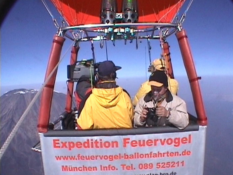 In 7000 Meter Höhe, frei im Korb, getragen von 6000 Kubikmetern heißer Luft, der Versuch Afrikas höchsten Berg, den Kilimandscharo, mit einem Heißluftballon zu überqueren. Als erste Deutsche wagen der Pilot Andreas Schwierz und sein Partner Johann Brodnig dieses Abenteuer. Eine Expedition an die Grenzen der Machbarkeit. Mein Kameramann Frank Becht und ich waren hautnah im Korb dabei. Auftragsproduktion für das ZDF, Auslands-Reportage.